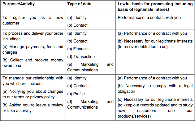 We have set out below, in a table format, a description of all the ways we plan to use your personal data, and which of the legal bases we rely on to do so. We have also identified what our legitimate interests are where appropriate.